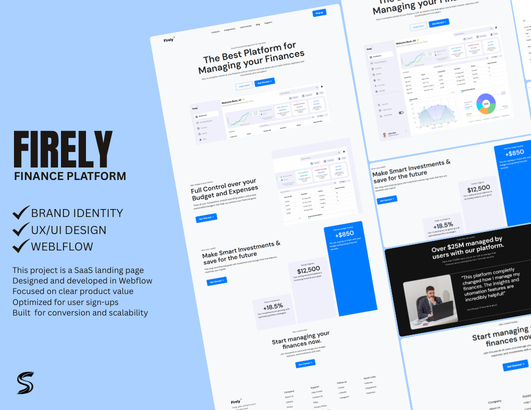 This project is a SaaS landing page designed and developed in Webflow, focused on clearly communicating product value and driving user sign-ups. The layout emphasizes key features, real product dashboards, social proof, and strong calls to action. Content is structured to guide users from product introduction to benefits, testimonials, and conversion points. Clean typography, consistent spacing, and responsive layouts ensure clarity and usability across devices. The result is a polished SaaS website that effectively showcases the platform and supports user growth.